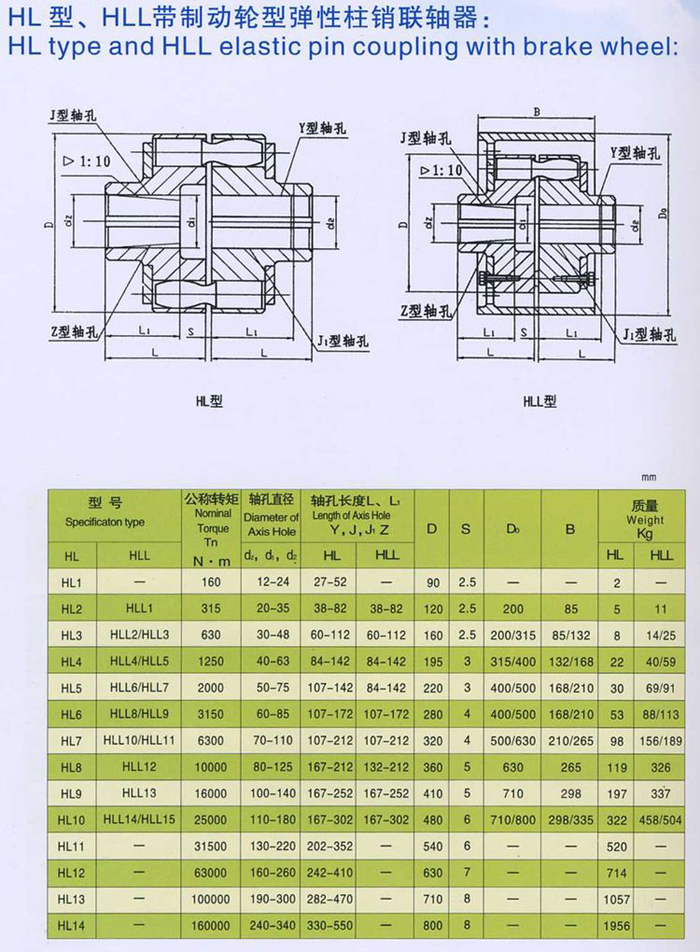 HL型、HLL帶制動(dòng)輪型彈性套柱銷聯(lián)軸器系列