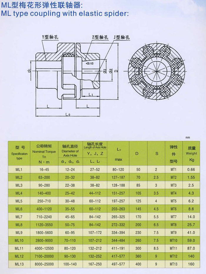 ML型梅花形彈性聯(lián)軸器系列