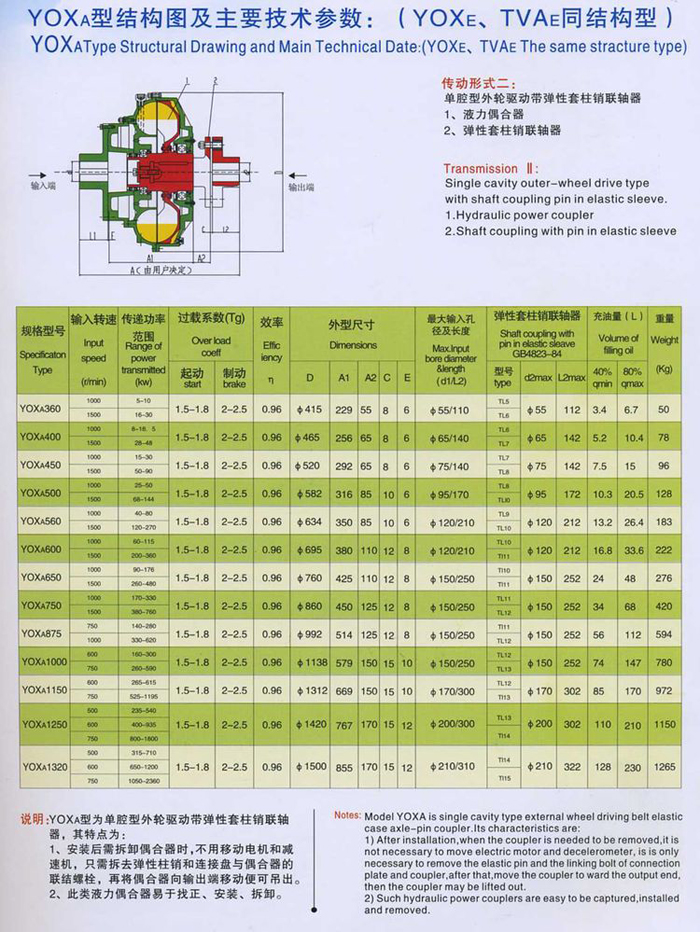 說(shuō)明:YOXA型為單腔型外輪驅(qū)動(dòng)帶彈性套柱銷聯(lián)軸器,其特點(diǎn)為: